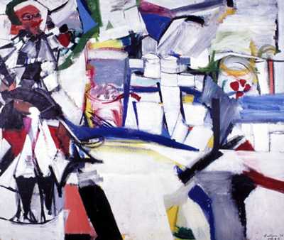 We talked about a few things while in the gallery. We read a book and looked at a painting by Grace Hartigan. If you look real close, there are even a few hearts! Perfect! We wandered through the geometrics and found more Valentine colors and shapes. We talked about the colors red and pink and how you create pink by mixing red and white. We talked about stripes and became stripes by laying on the floor.